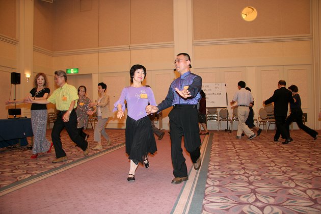 レクレーションとしてのスクエアダンス、ラウンドダンスの本質の重要性にかんがみ、公認指導者相互が研修を通し、資質上と意思統一を図り、もって全国的な普及発展に寄与する事を目的とし、この研修会は開催されました。全国から110名の参加者が、下記の研修テーマで、熱心にまた楽しく研修をされました。